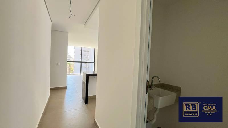 Apartamento no bairro Serra, conta com sala para dois ambientes em porcelanato conjugada à cozinha em granito, lavabo, área de serviço e 2 suítes com piso vinílico de madeira.