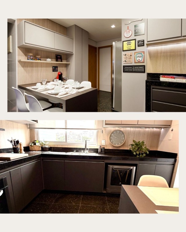 A cozinha é espaçosa, funcional e elegante, com área de serviço independente e banheiro de apoio, atendendo com praticidade às necessidades do dia a dia.