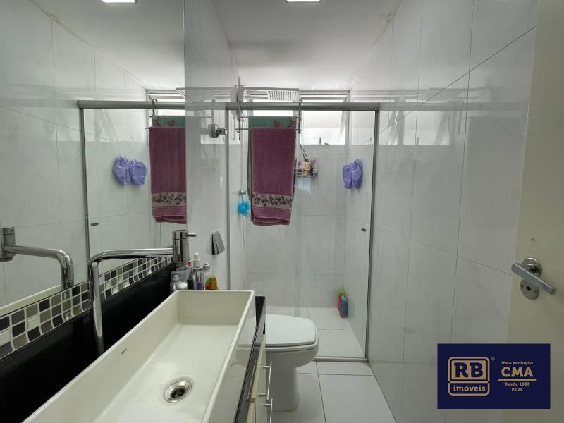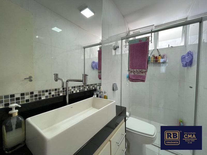 Banheiros (social e suíte) com bancadas em granito e box em blindex.