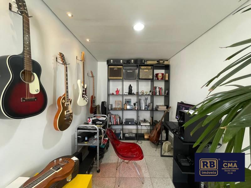 Escritório funcional, também com piso em granito.