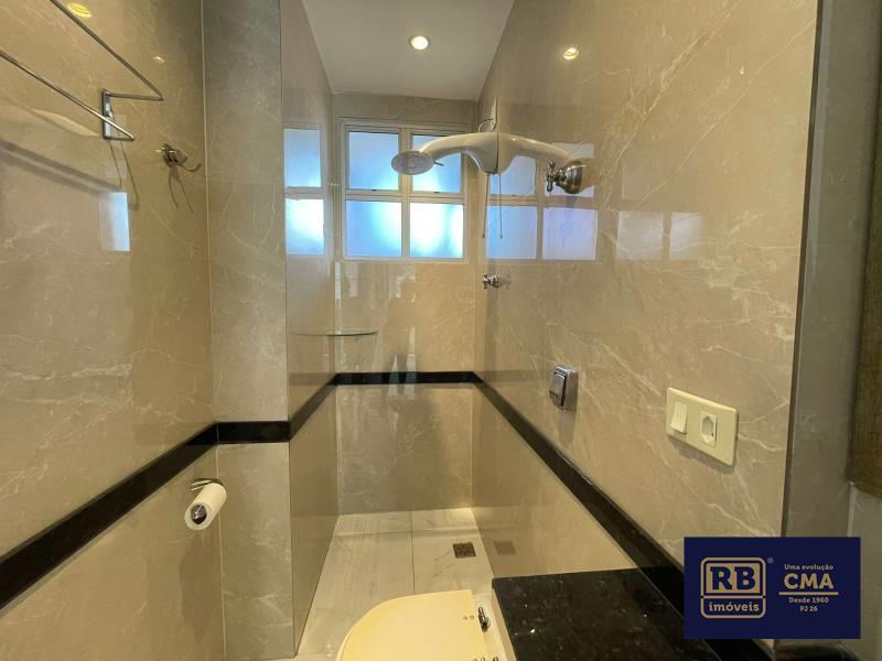 3 quarto amplos, um com piso em tábua corrida, e dois com piso em mármore, armários, sendo uma suíte com closet, revestido em mármore claro, box em vidro temperado, chuveiro com ducha metálica, iluminação embutida no teto, espelho e bidê